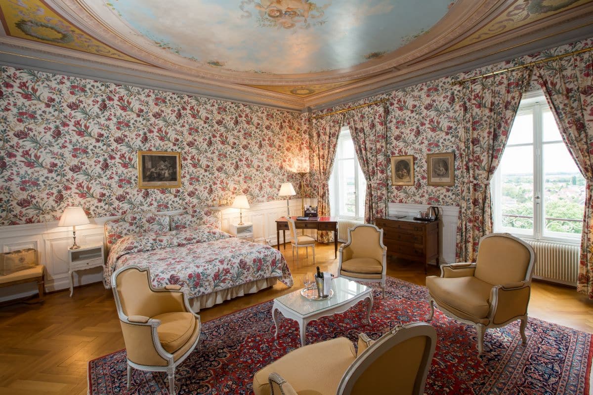 Diese eleganten und hellen Zimmer mit Blick auf den Garten oder die Elsässer Ebene haben alle einen ganz individuellen Anreiz: die einen eine eigene Terrasse, die anderen einen Kamin, eine Veranda im Art-Deco-Stil oder eine Deckenmalerei. Sie besitzen ein Doppelbett oder zwei Einzelbetten (auf Anfrage) und ein Badezimmer mit Badewanne und eine separate Toilette.